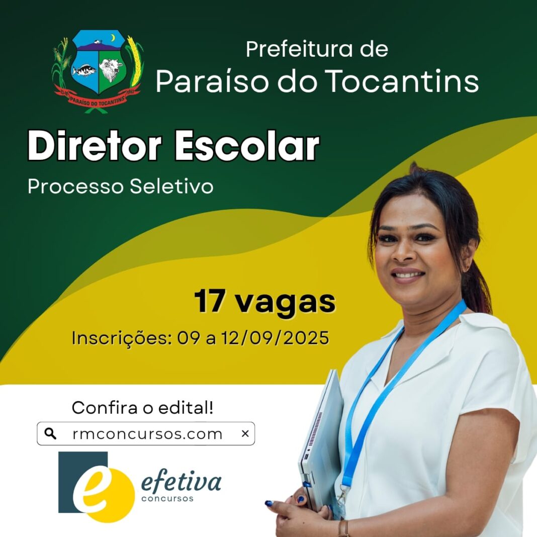 A Prefeitura de Paraíso do Tocantins, por meio da Secretaria Municipal de Educação, publicou nesta quinta-feira, 28 de agosto, o Edital nº 02/2025, que regulamenta o Processo Seletivo e Eleitoral para escolha de Diretores das Unidades Escolares e Centros Municipais de Educação Infantil da Rede Municipal.