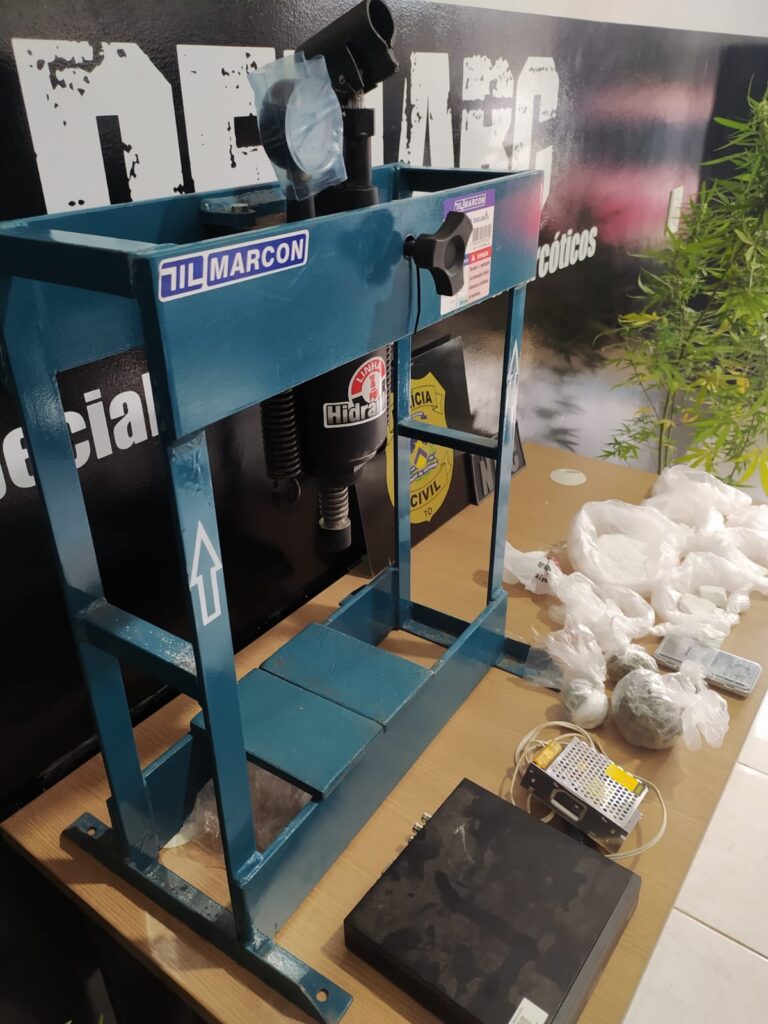 Drogas, e prensa hidraúlica apreendidos pela 1ª Denarc em Palmas