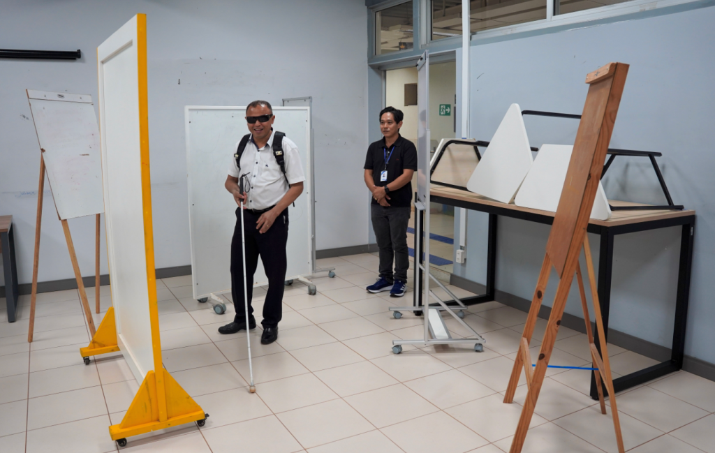 Em uma iniciativa voltada para aproximar o projeto da realidade das pessoas com deficiência visual, a equipe promoveu uma demonstração prática no Laboratório de Aprendizagem do UniCatólica junto à Associação dos Deficientes Visuais do Estado do Tocantins (ADVETO). O encontro, que ocorreu na última sexta-feira (05), contou com a participação do Dr. Euler Rui Barbosa Tavares, vice-presidente da Comissão dos Direitos das Pessoas com Deficiência da OAB/TO e presidente da ADVETO.