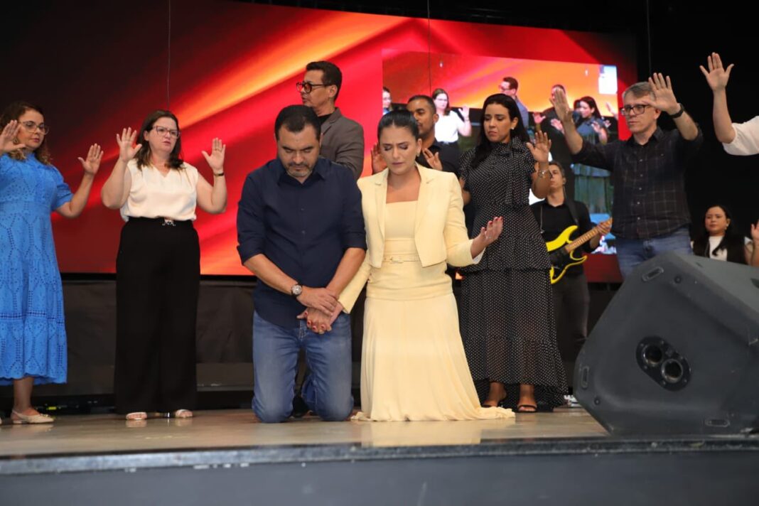 O governador do Tocantins, Wanderlei Barbosa, e a primeira-dama Karynne Sotero participaram na noite desta sexta-feira, 19, de um culto especial de ação de graças na Igreja Batista Crescer (SIBAPA), em Palmas. O evento foi um momento de profunda fé, gratidão e reconhecimento a Deus, reunindo autoridades, membros do governo, líderes religiosos e a comunidade local.