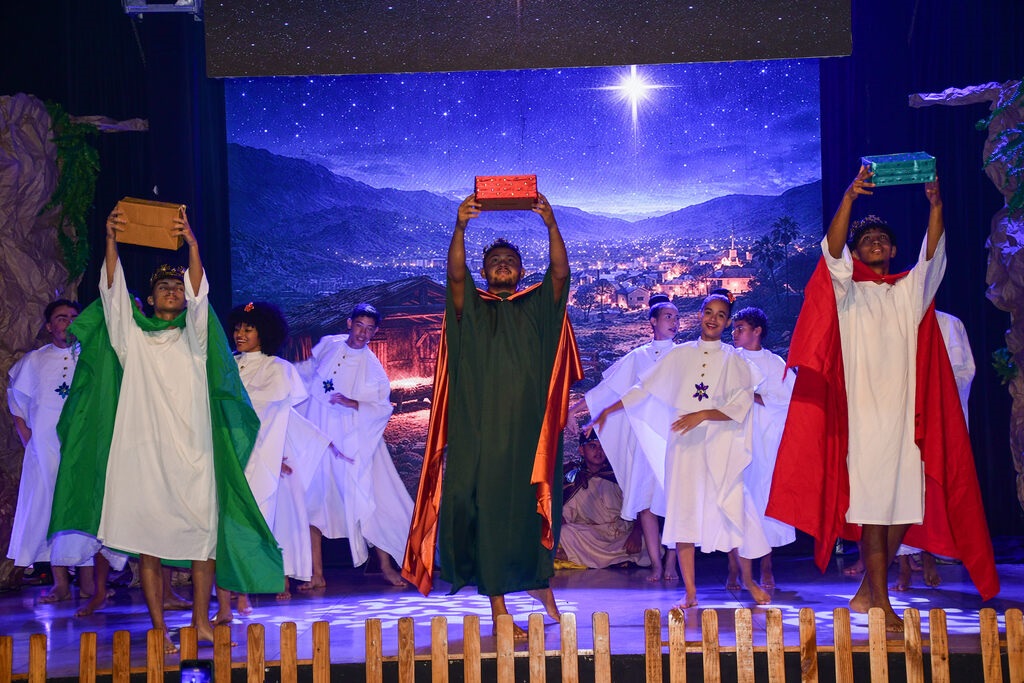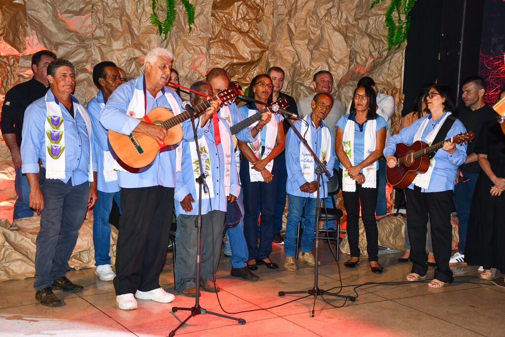 A programação contou com momento devocional conduzido pelo padre Kaique Batista, pároco da Paróquia São José Operário, que realizou a bênção do evento e participou com cânticos religiosos. Na sequência, a cantora Maria Gabriela, integrante do Ministério Anjinhos de Deus da Igreja Católica, apresentou a canção O Tempo de Comemorar, acompanhada do músico Mauro Becker. Um dos destaques da noite foi a apresentação cultural do grupo Junina Tradição da Serra, com a encenação do Presépio Vivo. Por meio da dança e da atuação teatral, o grupo retratou o nascimento de Jesus e a visita dos três Reis Magos.