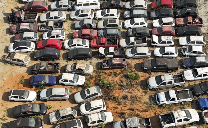 Conforme o edital, os veículos classificados como conservados, com placa de outro estado e que apresentarem débitos não quitados pelo valor da arrematação, terão os débitos desvinculados pelo órgão de registro, após comunicação. Para as sucatas, a pessoa que arrematar o lote só poderá aproveitar as peças após a baixa do registro pelo estado de origem.