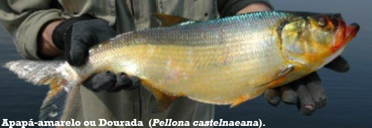Trata-se do Apapá-amarelo (Pellona castelnaeana), comumente conhecido por “Dourada” ou “Sardinhão”, em muitas regiões. É um peixe de escamas muito valorizado acolá pelos torrãozeiros do Rio Javaés, importante para a pesca comercial, esportiva e de subsistência, em especial na Amazônia brasileira, contribuindo para a segurança alimentar e garantia nutritiva, sendo uma espécie da família Pristigasteridae pouco explorada comercialmente nas bacias do Tocantins e Araguaia.