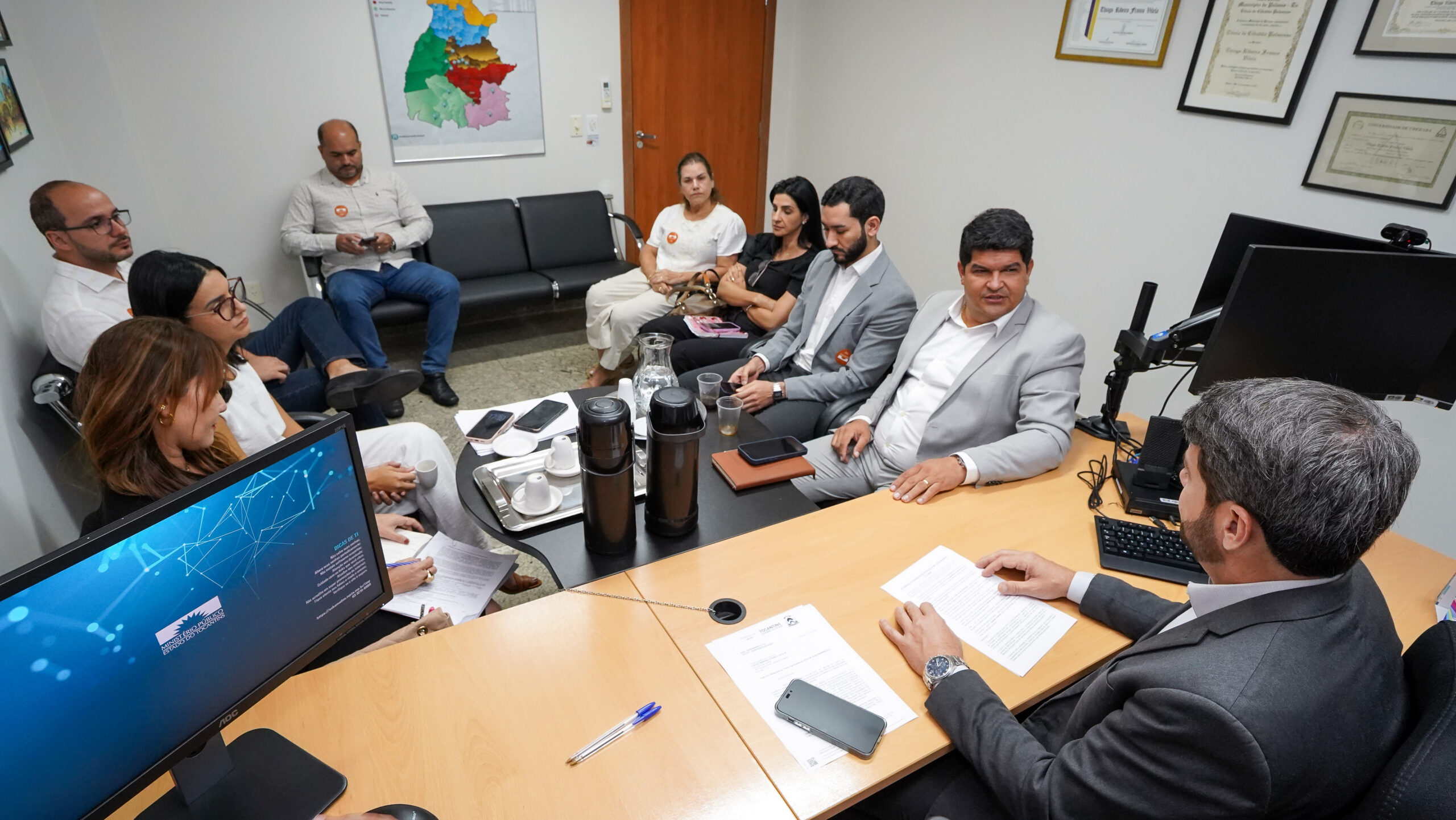 A reunião foi conduzida pelo promotor de Justiça Thiago Ribeiro Franco Vilela e contou com a presença de representantes da SES-TO, entre eles o Secretário Carlos Felinto Júnior, equipe técnica da SES, além de gestores do HGP e profissionais da área médica.