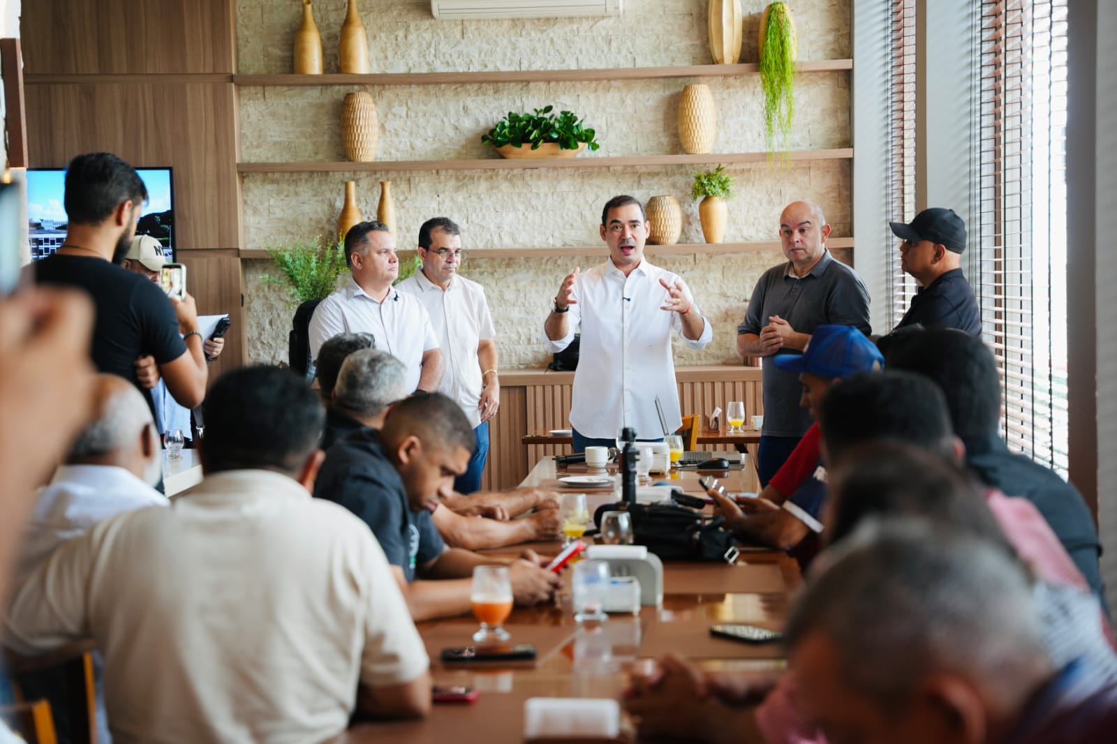 Vicentinho Júnior recebeu os comunicadores da região norte para encontro, com objetivo de ouvi-los sobre as demandas da categoria, mas também da situação do Estado. “Os profissionais da comunicação estão na linha de frente e têm papel importantíssimo ao noticiar os fatos para a sociedade tocantinense”, salientou, entre uma resposta e outra sobre política, gestão, trabalho como parlamentar e projetos para o governo do Estado.