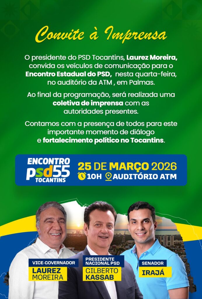 O Partido Social Democrático (PSD) do Tocantins realiza nesta quarta-feira, 25 de março, às 10h, no auditório da Associação Tocantinense de Municípios (ATM), em Palmas, o Encontro Estadual da sigla. O evento foi convocado pelo presidente estadual do partido e vice-governador, Laurez Moreira, que também convidou a imprensa para acompanhar a programação.
