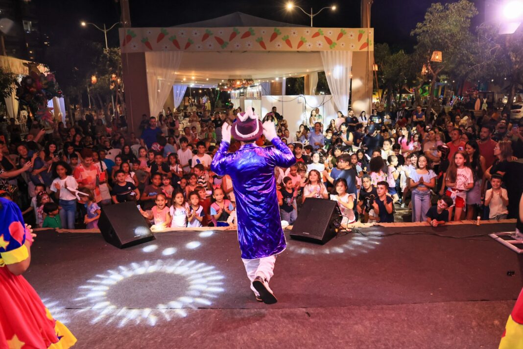 Luzes coloridas, risadas infantis e o clima de fantasia transformaram o Parque Cesamar, na noite desta quinta-feira, 2, em um verdadeiro cenário de conto de Páscoa na segunda noite da programação da Páscoa dos Sonhos 2026, promovida pela Prefeitura de Palmas, por meio da Fundação Cultural de Palmas, com apoio das Secretarias de Comunicação, de Turismo e de Desenvolvimento Econômico. Famílias inteiras ocuparam o espaço para acompanhar as apresentações culturais e proporcionar momentos especiais às crianças.