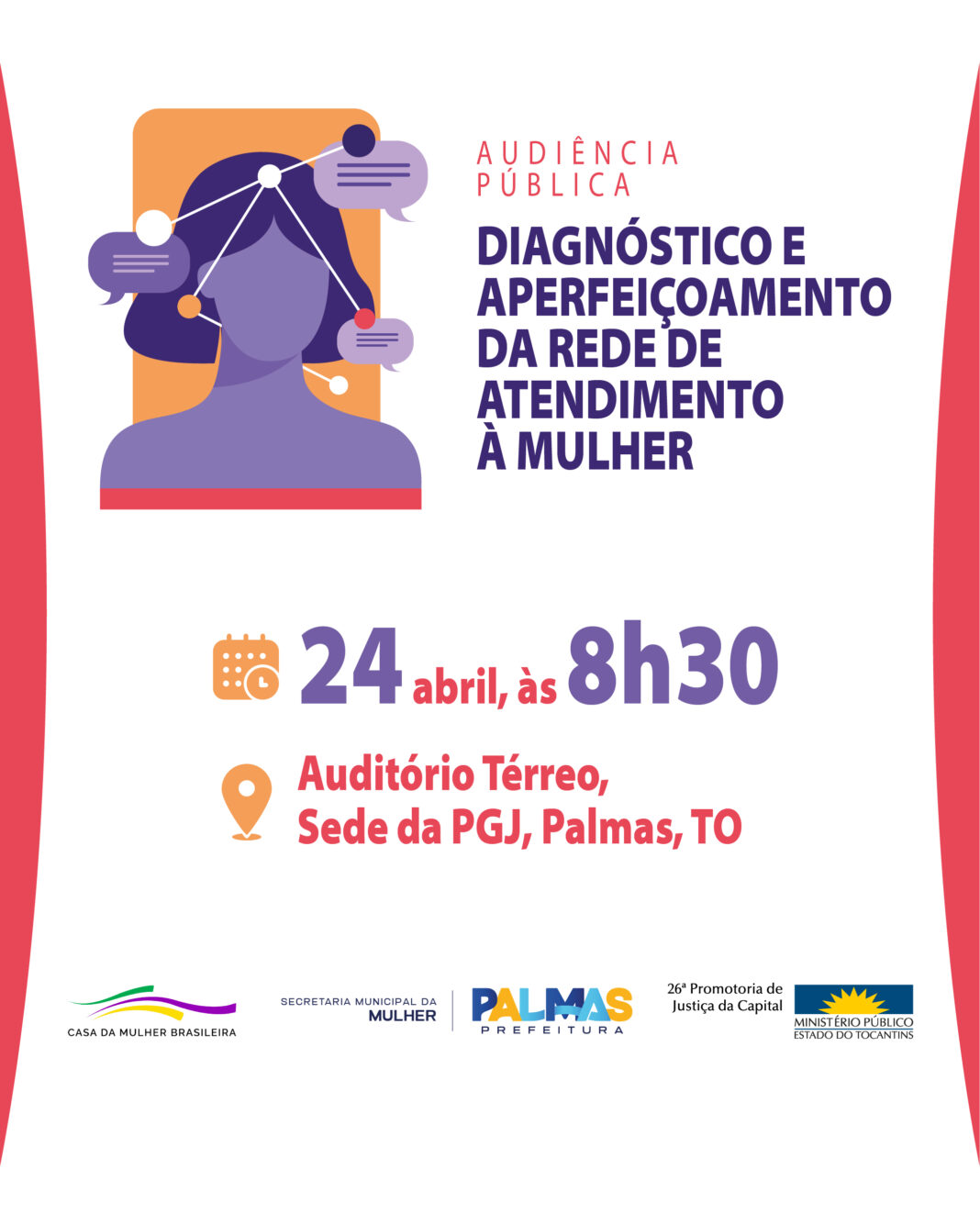 A proteção às mulheres em situação de violência doméstica e familiar estará no centro de um debate público promovido pelo Ministério Público do Tocantins (MPTO), no próximo dia 24 de abril, em Palmas. A audiência pública foi convocada pela 26ª Promotoria de Justiça da Capital para discutir o funcionamento, os desafios e as possibilidades de aperfeiçoamento da Rede Municipal de Proteção à Mulher.