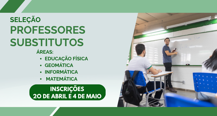 Foi publicado o edital nº 22/2026 do processo seletivo simplificado para formação de cadastro de reserva para contratação de professores substitutos nas áreas de Educação Física, Geomática, Informática e Matemática, no Campus Araguatins do Instituto Federal do Tocantins (IFTO). As inscrições são gratuitas e devem ser realizadas de 20 de abril a 4 de maio, por meio do envio do formulário de inscrição (Anexo I) e da documentação exigida no edital da seleção para o e-mail: seletivoaraguatins@ifto.edu.br.