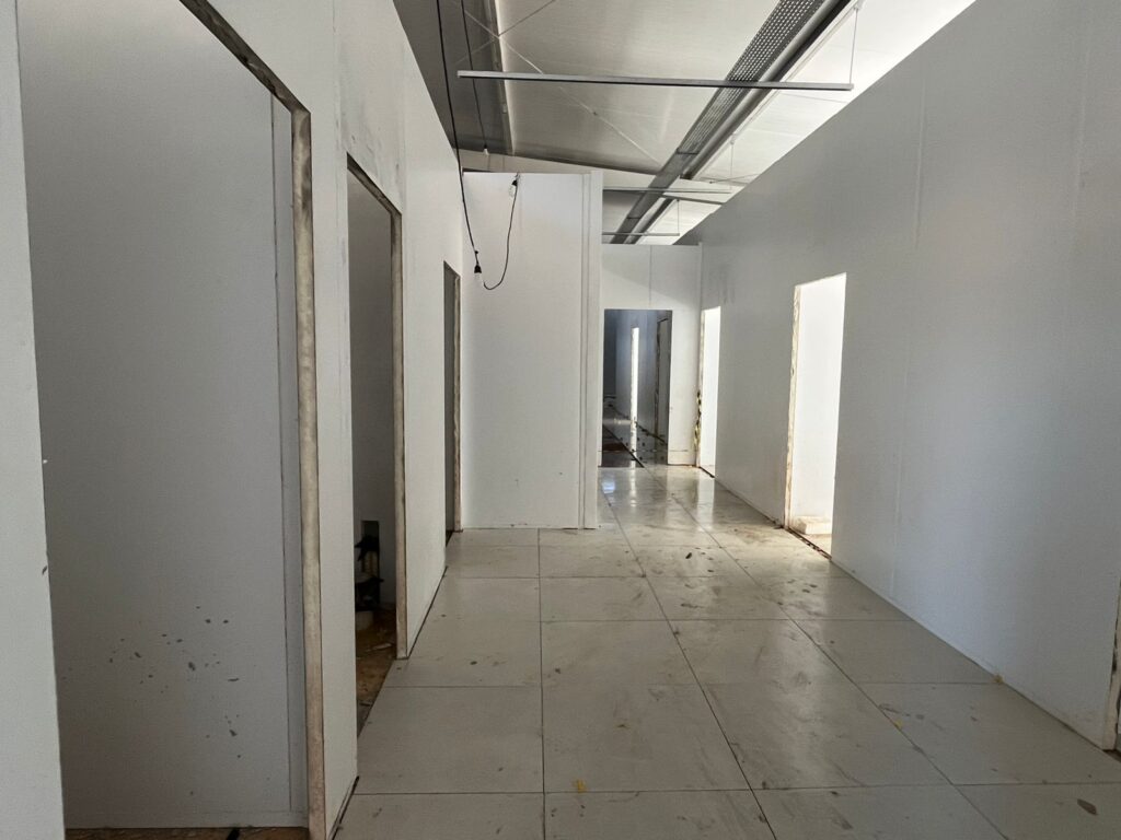 Atualmente, os trabalhos concentram-se na fase de acabamento. Toda a estrutura de cobertura do edifício já foi instalada e os serviços de fixação dos painéis isotérmicos — responsáveis pelo fechamento da estrutura — devem ser concluídos nesta semana. Paralelamente, as equipes já iniciaram a instalação dos pisos na área interna e avançaram na montagem da estrutura externa.